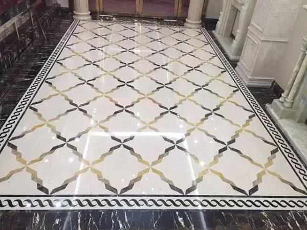 水刀拼花在現(xiàn)實裝修中較常見,美觀使用,主要在地磚中加以水刀拼花裝飾,顯得更加富麗堂皇。水刀拼花還不限制于瓷磚加工,大部分拼花廠品更是腦洞大開,有瓷磚與玻璃之間的組合,有瓷磚與金屬組合。