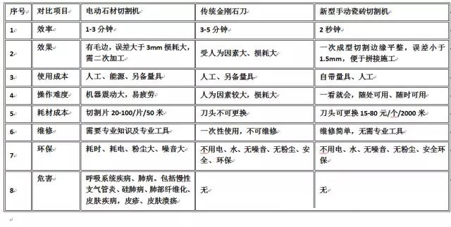2、對于仿古或其它凸凹不平面體之類的瓷磚,請更換刀頭!粗澀面體的瓷磚會縮短刀片的使用壽命。