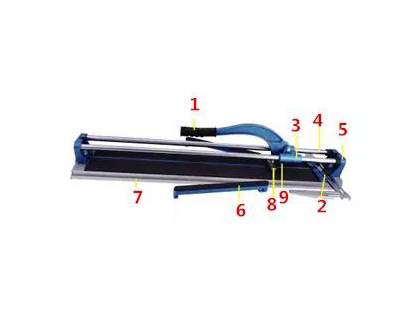 1.手柄 2.標(biāo)尺 3.滑動座 4.滑軌 5.導(dǎo)軌座 6.支架 7.鋁合金底座 8.壓塊 9.刀輪